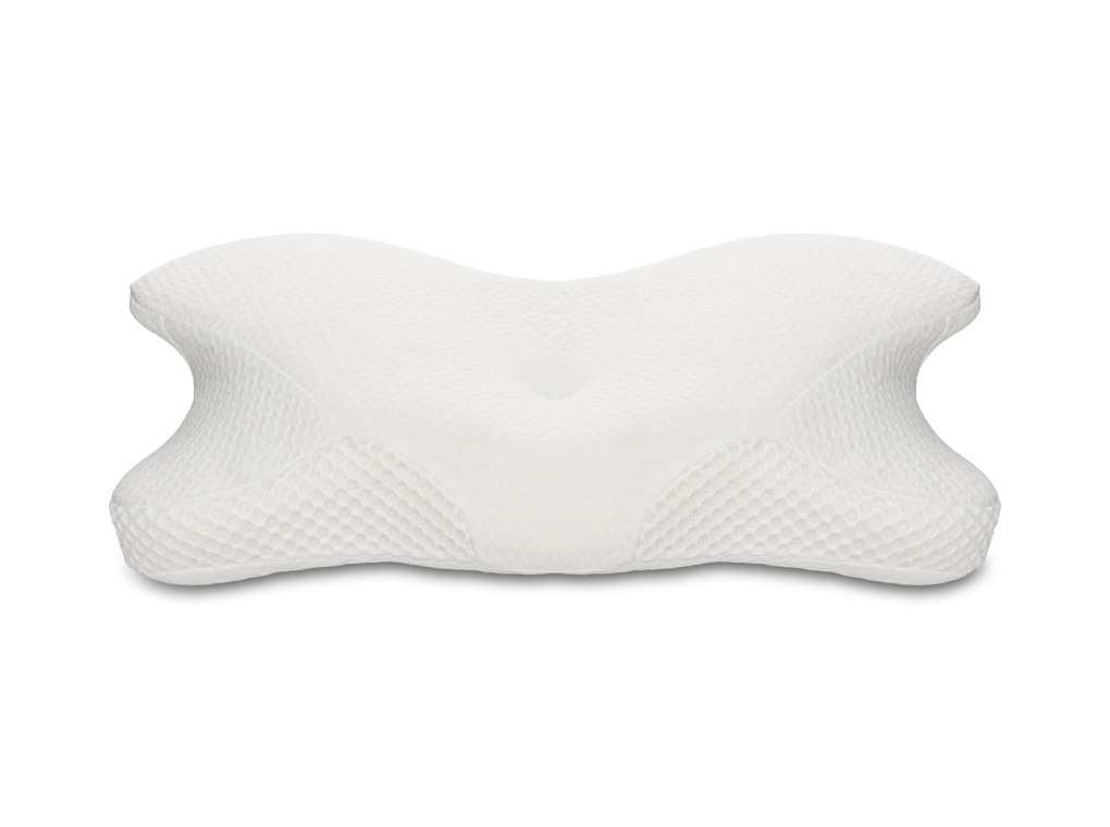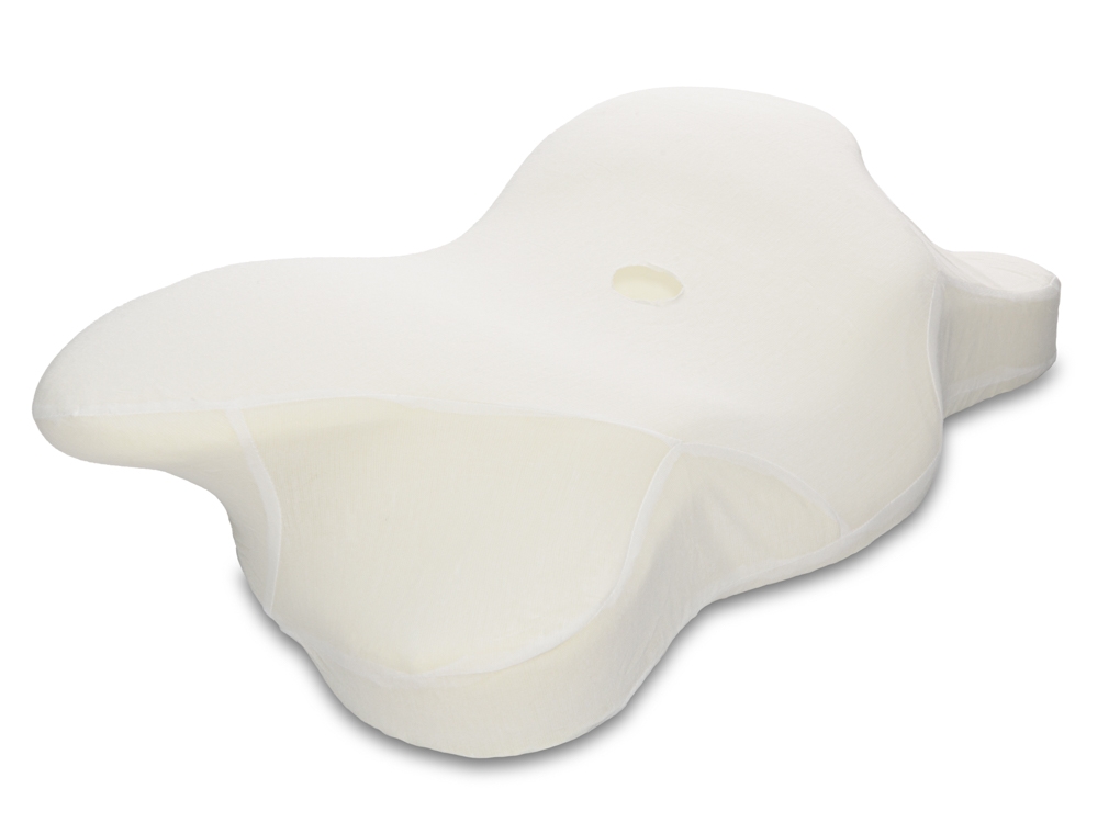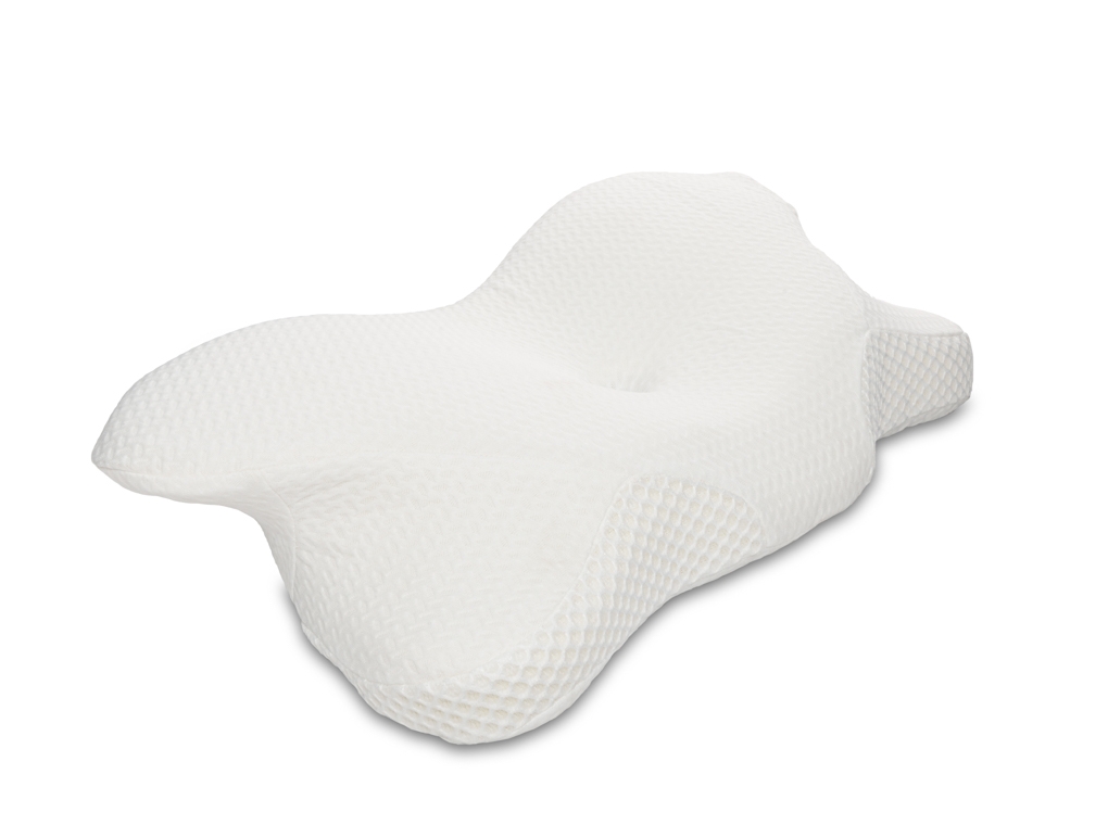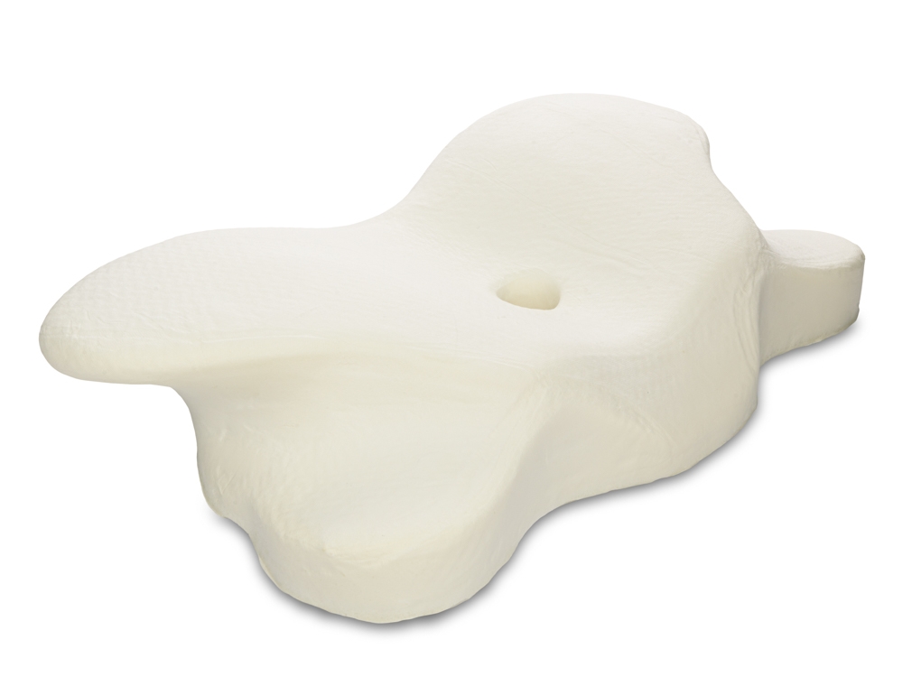 Vormgegoten ergonomisch kussen van traagschuim met anatomisch design.